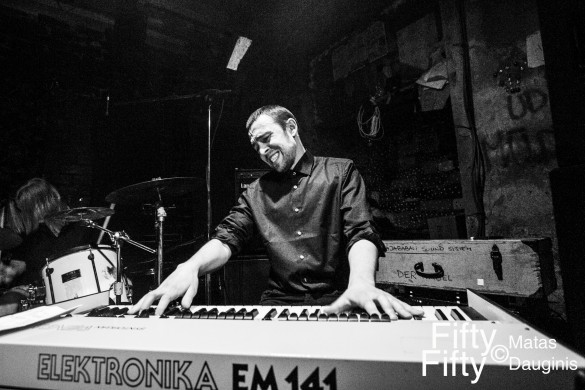 Rytis: Išvis sunku sakyti, ką galvoji, nes būna visai kita būsena ir nelabai spėji kažką… Akys per klaviatūrą laksto, o tuo pačiu metu grynai visas emocinis būvis yra. Ir minčių kažkokių konkrečių ar vaizdinių nėra. Vat per repeticiją bandžiau jūrą, bangas įsivaizduot, tai visai kitaip skamba, jau trečią repeticiją…
