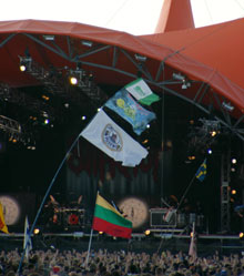 Viena is senu Roskildes festivalio tradiciju – veliavos. Gera desimtmeti cia buvo galima isvysti visiskai girta metalista… mosikuojanti sovietines LTSR veliava. Greiciausiai metalo karys is Skandinavijos suseno ar nezinia kas atsitiko, taciau jos nebera. Uztai atsirado dano baikerio ir uz jo istekejusios lietuves laikoma trispalve. Kaip parode si ir estu veliavos praktika – tai gera proga susipazinti visoje sioje zmoniu maisalyneje. Jei tik dar truksta pazinciu is po vakar.