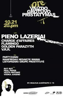 Nuo devintos valandos vakaro “Skalvijos” patalpose esančiame bare “Brius Ly” gros tokie šaunuoliai kaip V.R.R., GOLDEN PARAZYTH, Partyzanai DJs, Manfredas iš ZIP FM, o nuo dvyliktos didžiojoje salėje – mūsų nuomone, tikrai geriausios, įdomiausios ne tik “Ore Grotuvo”, bet ir visos šalies pastarojo meto grupės – PIENO LAZERIAI, CHARGE D’AFFAIRES, FLAMINGO…
