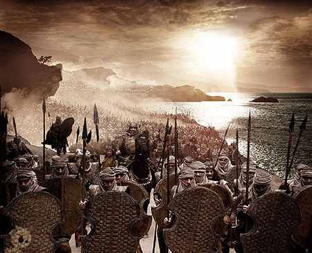 “300” apdainuoja drąsą spartiečių ir iškrypimą persų, kurių armija atrodo, kaip prabangi “love parade” procesija, kurią veda auksu apkarstytas Xerxas. Nieko nuostabaus, kad Irano vyriausybė pasipiktino, mat Xerxą iš mūšio lauko būtu galima perkelti tiesiai į bondage žurnalą.