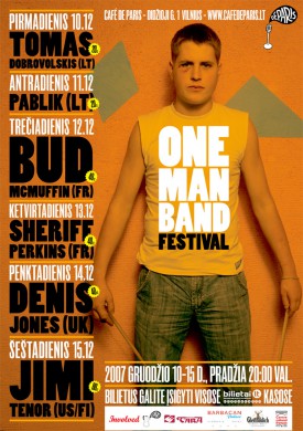 Pernai “One Man Band” festivalyje pasirodė atlikėjai iš Lietuvos, Prancūzijos ir Šveicarijos. Šiemet renginio dalyvių geografija išsiplėtė: Lietuva, Prancūzija, D.Britanija ir Suomija, tačiau pagrindinis festivalio akcentas – vienas žmogus scenoje – išliko. Vienas festivalio iniciatorių Augustinas Beinaravičius pernai juokavo, jog “Paryžiaus kavinės” scena paprasčiausiai per maža dviems. Būtų gana paprasta surinkti kelias dešimtis prie laptopų palinkusių šamanų – šiais laikais tokių netrūksta. Tačiau “One Man Band” dalyviai dažniausiai nesukinėja virtualių rankenėlių, o savo pasirodymuose naudoja gyvus instrumentus: styginius, mušamuosius, klavišinius, pučiamuosius, spaudžiamuosius ir kitus. Įdomiausia, kada vienu metu atlikėjas groja keliais instrumentais ir dar dainuoja.