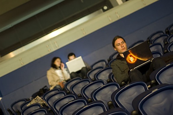 Vos įžengus į „Siemens“ areną pasitiko baltai vilkintis komandos savanoris ir įteikė iš laikraščių pasiūtą maišelį. Jame – organizatorių dovanos, interneto prisijungimo slaptažodis ir guminė kompiuterio pelė, reklamuojanti euro tinklaraštį. Pelės tikslo nepasiekia – reklamuojamame tinklarašty vis dar nesu apsilankęs.