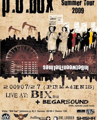 Nuolatiniai Lietuvos svečiai, ska/punk grojantys prancūzai P.O.Box pirmadienį (liepos 27 d.) pasirodys Vilniuje, bare „Bix“ (Etmonų g. 6). Grupę apšildys jų tautiečiai, save pristatantys kaip melodic punk atstovus, Begarsound. Koncerto kaina – 15 lt.