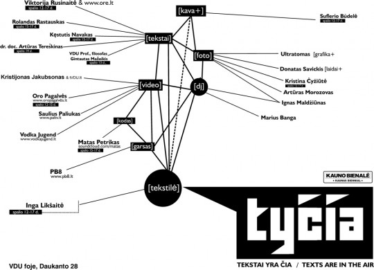 Projektas „Tekstai yra čia“ vyks kasdien nenutrūkstamai nuo 12 iki 19 val., į jį įsitrauks informaciniuose pranešimuose, plakatuose neminimi žmonės, o minėtieji sukurs eksperimentų, apie kuriuos čia nerašoma.
