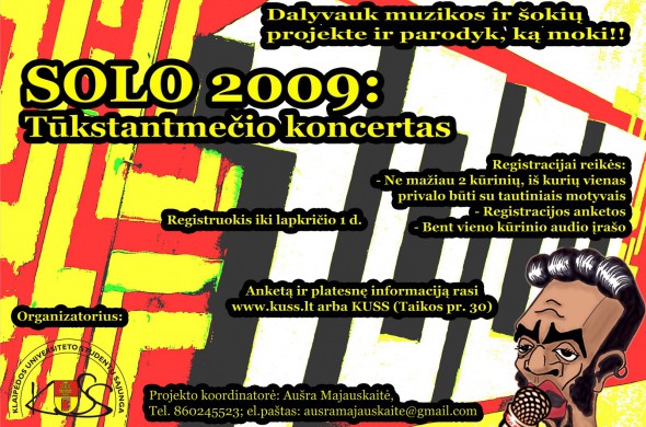 Jau ketvirtą kartą Klaipėdos universiteto studentų sąjunga organizuoja jaunųjų talentų paiešką. Nors paprastai į “Solo” pavadintą konkursą kviečiami muzikantai ir dainininkai, šį kartą laukiami ir šokėjai. Norintys dalyvauti turi būti sukūrę du kūrinius, užpildyti anketą (galima rasti www.kuss.lt) ir išsiųsti […]