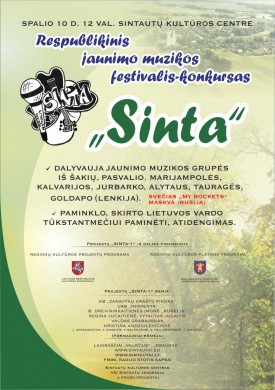 Spalio 10 d. (šeštadienį) nuo 12.15 Sintautų kultūros centre prasidės jaunimo muzikos festivalis-konkursas SINTA-1
