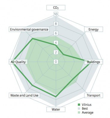 Diagramoje-vore aiškiai matosi Vilniaus reitingas skirtingose kategorijose. Ataskaitoje nurodoma, kad sąlyginai daug prie Vilniaus pirmavimo prieš kitas Baltijos šalių sostines prisidėjo pirmoji vieta užimta pagal oro kokybės kriterijų. Tik čia mes pirmaujame ne dėl efektyvių ekologinių sprendimų, o dėl stambių pramonės objektų nebuvimo mieste.