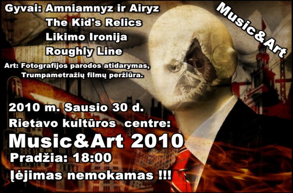 Ore.lt redakcija nusprendė labai nekeisti šios puikios žinios teksto: Sausio 30, šeštadienis, Tave, gerbiamasis pasitiks be kamščių ir smogo, mat menas šįkart teikėsi parodyti savo gyvastį Rietave, itin žaviame Žemaitijos miestelyje (proga pasižmonėt?) su trenksmu atriedant renginiui „Music&Art 2010“ . […]