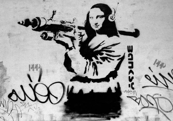 Banksy žinomas dėl kontraversiškų politinių graffiti ir meninių-socialinių akcijų. Tarp žinomiausių jo darbų: