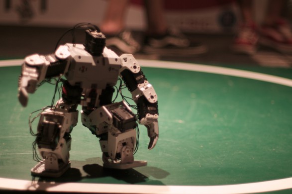 Vėsioje MACBA galerijoje vakar dieną pradedame robotų ekspozicija. Iš penkių ringe sustatytų robotų-kovotojų per penkiolika sekundžių kanopas užverčia trys ir bejėgiškai mataruoja rankytėmis ir kojytėmis kol globėjiška prižiūrėtojo ranka pastato juos atgal. Ateities vizijos visai neoptimistinės, pasakysiu aš Jums. Žmonių tuntai stovi aplink robotą (ty interaktyvų ploterį), kuris tavo pririšta ranka gali nupiešti tavo paties portretą, tiesa prieš tai tave nufotkina webcamas.