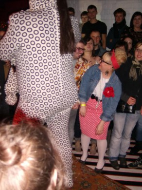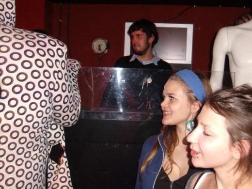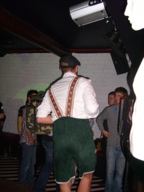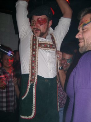 Mano propaguojamos ekstravagancijos klube mačiau nedaug. Vienas dalyvis buvo su nesveikai plačiu ružavu disco stiliaus šlipsu, simbolizuojančiu-savaime-aišku-ką, dar buvo vienas su aptemptais šortais ir keletas dalyvių ryškiais rūbais. Pastebėjau ir raumeningų spintos tipo vyriškių. Bandžiau įsivaizduoti tokį šalia savęs.