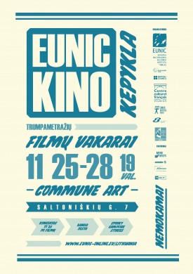 Lapkričio 25-28 dienomis Vilniuje žiūrovus į netikėtą erdvę vilios nemokamos trumpametražių filmų peržiūros. Kino vakarai pavadinimu „EUNIC kino kepykla“ vyks buvusioje „Vilniaus duonos“ 4-ojoje kepykloje įsikūrusiose „Commune Art“ kūrybinėse dirbtuvėse. Keturis vakarus bus pristatomi Europos režisierių sukurti trumpametražiai kino filmai.