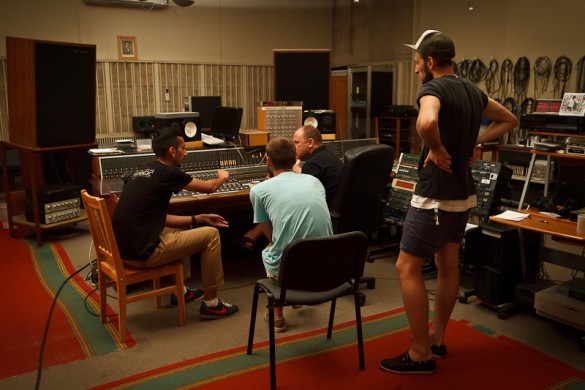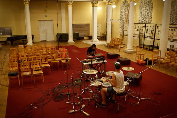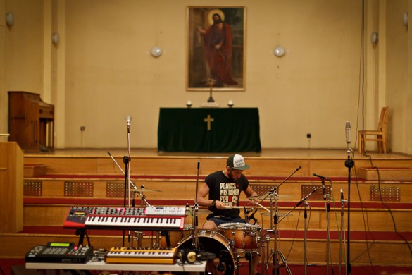 Tai ne apie garso kokybę, o labiau apie eksperimentavimą su garsu. Studijoje, kurioje dirbome (t.y. bažnyčioje – Ore.lt), neturėjome labai geros įrangos, tačiau buvo įdomu įrašinėti būgnus ir visa kita didžiulėje, kvapą gniaužiančioje erdvėje su 2.5 sekundės trukmės natūraliu aidu, įrašinėti viską juostoje, o ne kompiuteryje, kadangi savo muzikoje naudojame daug sintezatorių. Mes tiesiog stengiamės, jog garsas skambėtų natūraliau ir šilčiau.