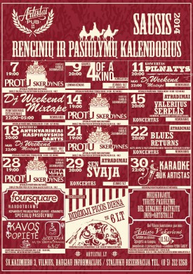 PUB‘as ARTISTAI, Šv.Kazimiero g. 3, Vilnius | Daugiau apie pub‘ą: www.artistai.lt | Rašykite mums: info@artistai.lt