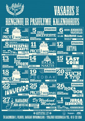 PUB‘as ARTISTAI, Šv.Kazimiero g. 3, Vilnius | Daugiau apie pub‘ą: www.artistai.lt | Rašykite mums: info@artistai.lt
