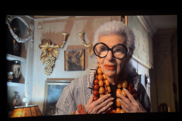 Festivaliui parinktas paskutinis žymaus dokumentinio kino klasiko Alberto Maysleso filmas „Iris“ – pasakojimas apie 93 m. niujorkietę Iris Apfel, garsią mados kolekcionierę, ekspertę, interjero dizainerę ir ironiškai kandžią močiutę, savo dviaukštėse spintose turinčią daugybę drabužių istorijos eksponatų nuo diorų, lagerfeldų iki kiniečių šamanų kostiumų. Gerbiančią tradicinius siuvinėtojų ir audėjų amatus ir nesuprantančią šiandieninių dizainerių: “Jie susiranda seną drabužį, persiuva keletą sagų ir parduoda kaip savo”. Deja, neteko matyti L.Plioplytės “Amžinai stilingų”, bet, spėju, kam patiko, turėtų pamatyti ir “Iris”, nes ji – iš jų chebros, tik gal gyvenime galėjo sau daugiau leisti. Filmas ne vien apie madą ir dėl jos gražiai išprotėjusią moterį, bet ir apie aistrą ir meilę gyvenimui, suteikiančią įkvėpimo ir energijos šimtui metų. Apie meną turėti savo nuomonę ir nekreipti dėmesio į kitus. Štai jums tikrasis “La grande bellezza”.