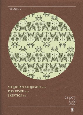 „Sequoian Aequison“ kartu su „Dry River“ išleidžia bendrą split‘ą ir leidžiasi į dviejų savaičių turą, kurio metu pirmą kartą aplankys mūsų sostinę. Abi grupės jau keletą metų skendi postroko eksperimentuose. Abi yra išleidusios savo debiutinius albumus, tačiau jų kuriamos muzikos skambesiai yra gana skirtingi, todėl vienas kitą praturtina.