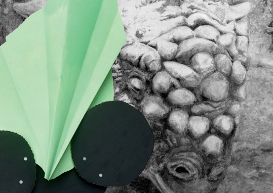 Valerie Mannaerts „Orlando (sausainiai)“ (2013), medis, pieštukas ant popieriaus, fotokoliažas ant medžio, drobė (nuotrauka: Kristien Daem)
