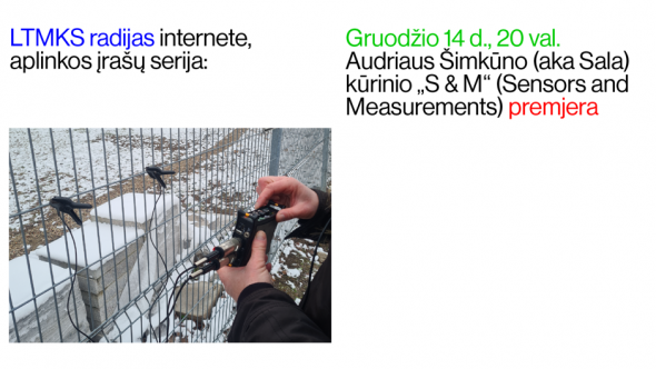2020 m. gruodžio 14 d. 20 val. LTMKS radijo platformoje vyks Audriaus Šimkūno kūrinio „S & M“ (Sensors and Measurements / Jutikliai ir matuokliai) premjera. Platformoje taip pat bus galima išgirsti autoriaus kūrinio pristatymą ir jo sudarytą aplinkos įrašų kūrinių grojaraštį. Renginio nuoroda pasirodys LTMKS socialiniuose tinkluose keletą dienų prieš premjerą.