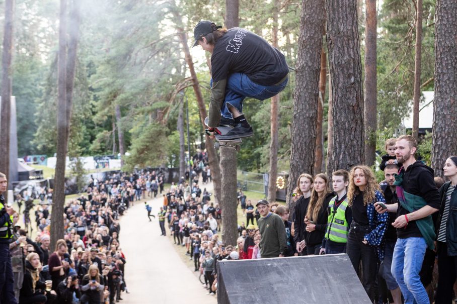 Šiemetinis oras labai priminė skandinavišką midsommerį – valandą šviečia saulė, kitą – lyja lietus, trečią – vėl kepina. Galbūt tai pasąmoningai vis nuvesdavo iki palyginimų su “Roskilde” Danijoje – savotišku Europos open-air’ų etalonu. Kita analogija – “atsarginio suolelio” grupės. Sklisdavo pasakojimai, kaip Kopenhagoje viešbutyje tūsinasi kelios grupės, kurias iškviestų, jei kažkas neatvyktų. Žinodami įtemptą situaciją pasaulio oro uostuose bei už už kampo vis dar tykantį kovidą, “Devilstone” taip pat pasinaudojo šia strategija: nenumatytais atvejais scenoje buvo pasiruošę pasirodyti lietuviai Arklio Galia ir Fused Trio bei latviai Terror Activator, bet… visi atskrido-atvažiavo ir nebuvo nė vieno atšaukto pasirodymo! Tempiant toliau link danų – programos punktualumas. Gal tik festo hedlaineriai Mayhem savo pradžią užtempė kiek ilgiau, visa kita vyko pliusminus 5 minučių tikslumu. Toliau vedant analogiją su danais – deja, mes jau pralenkėme skandinaviškas gėrimų/maisto kainas festivalyje. Kažkada “Roskilde” labai skaudėdavo piniginę, kai alus kainuodavo po 14lt, kiek litų būtų 4,5eur paskaičiuokit patys. Prieš “Devilstone” vienas internautas paskaičiavo, kad visam savaitgaliui reikėtų apie 500eur, berods, jau su festo merču. Taigi, iš tikrųjų tuoj gyvensime Šiaurės Europos kainomis. Kita vertus, neužmirškime, kad ne piniguose laimė, o skandinavai – vieni laimingiausių žmonių pasaulyje!