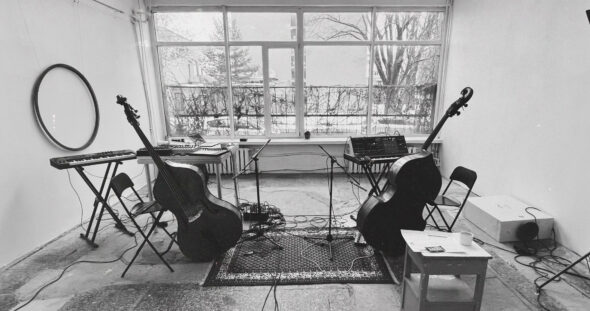Kompozicija įrašyta neseniai duris atvėrusioje naujoje „Ideas Block LT – Kompresorinė“ galerijoje, kuri pasižymi dideliu ir ilgu aidesiu, tai praturtina emocinę kelionę per kūrinio erdvę ir garsą. Domantas Pūras ir Ignas Šoliūnas, abu buvę kontrabosininkai pavirtę kompozitoriais, tyrinėja nestandartinę notaciją, naudoja mikrotonališkumą, išplėstines technikas ir skirtingas derinimo sistemas siekdami sukurti įtraukiantį garsų kraštovaizdį.