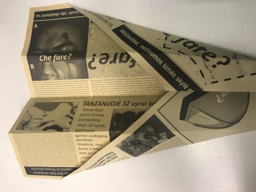 Ties buvusio Vilniaus miesto centrinio pašto pastato laiptais, Gedimino pr. 7, Vilnius. Performanso veiksmą sudaro 3-4 dubliai.