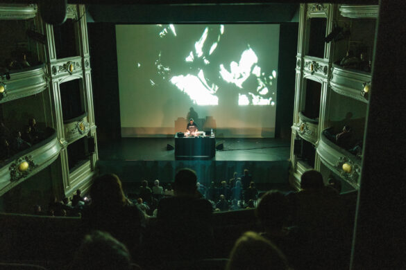 Po valčių koncerto – greita dislokacija į gretimais esantį De Koninklijke Schouwburg teatrą: greitai prabėganti eilutė, taurė vyno bufete ir jau sėdžiu parteryje. Teatras įspūdingas, su gražiomis freskomis ant lubų, balkonais, tikrai ištaigi erdvė atidarymui. Bet Kianí Del Valle Performance Group, Hamill Industries & Tayhana performansą vos ištvėriau iki galo. Šokėjų trupės plastika ir judesiai tikrai įspūdingi ir grakštūs, bet mane jau kuris laikas erzina tą hyper-digital/post-internet estetika, kuri čia dominavo tiek garse, tiek vizualuose. Muzikinė žanrinė mišrainė dekonstruotos klubinės muzikos su latino ritmais bei hyper-ambient intarpais ir kaip iš AAA geimo trauktos vizulkės kažkaip atrodo labai 2015 ir gražiai nepaseno. Atgyvenęs futurizmas, vis dar besivaidenantis tokio tipo festivaliuose. Tiesiog man labai nerezonuojantis dalykas su dažna “form over substance” problema.