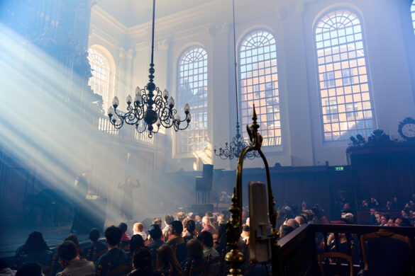 Tiesa, stebiu šį duetą jau antrą kartą – prieš pusantro mėnesio teko juos matyti mažame Amsterdamo džiazo klube ir tai buvo vienas geriausių mano kada nors girdėtų dalykų. Dabar tai vyksta sakralioje erdvėje su nuostabiai krentančia šviesa pro didelį langą priešais, su dar didesniu/geresniu garsu. Tad potyris dar stipresnis. Oleh kruopščiai ir kantriai stato moduliarines sienas, vis intensyviau gaubiančias erdvę savo magiška harmonijų derme ir jėga įtraukiančias į ekstatišką hipnozę, kuriame vienintelis gidas – Adriana nežemiško grožio balsu giedanti Hildegardos giesmes. Pasirodymas – dvi ilgos 20 min. kompozicijos, dvi pilnos sielos kelionės su širdį veriančiu Adrianos dainavimu. Kažką panašaus esu jautęs “Unsound” festivalyje 2014-taisiais per Current 93.