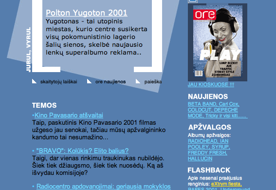 Vienas seniausių nepriklausomos ir subjektyvios žiniasklaidos kanalų Lietuvoje www.ore.lt pristato jau 5-osios kartos svetainės dizainą. 2013-uosius „Ore“ pasitinka ne tik nauja išvaizda, bet ir turiniu – prasideda naujas etapas. Praėjusio amžiaus pabaigoje ore sklandė idėja – apjungti tuometinę alternatyviąją kultūrą […]